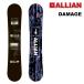 DAMAGEはソフトフレックス、ミッドキャンバーでありながら、より安定感とパワフルなライディングを可能にするため、スペック調整しました。オーリーの仕掛けやすさとアプローチやランディングでのバランス性能はALLIAN上位モデルにも匹敵します。また高速滑走性能のIS 7610シンタードベースでこのリーズナブル価 格はあり得ません。(カタログより)