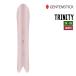 自然、人間、ボードが融合する三位一体という意味をもち、「大きな斜面を自由自在に滑る」という女性が思い描く理想のライディングの為のモデル TRINITY。ビックマウンテンではハイパフォーマンス、様々な地形をスムーズに滑空し、ツリーランではクイックな切り返し、そしてゲレンデでは切れ上がるカービング。自然体でライディングに集中できるシェイプに仕上がっている。(カタログより)